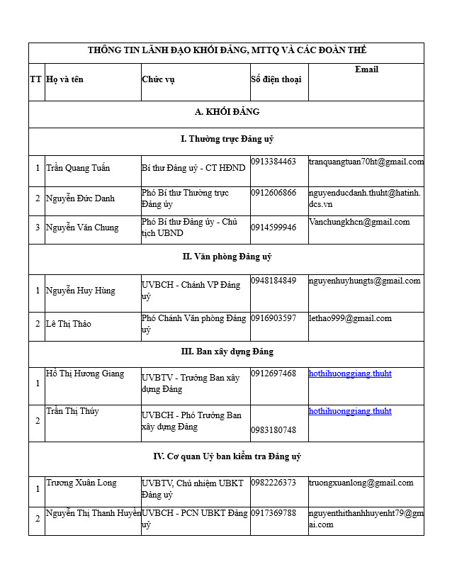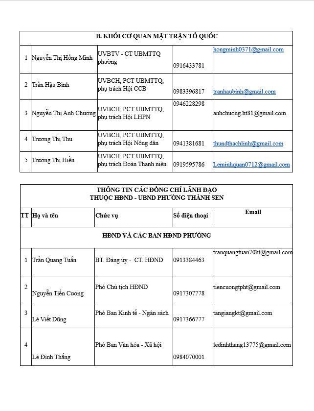Thông tin về Lãnh đạo phường Thành Sen, tỉnh Hà Tĩnh