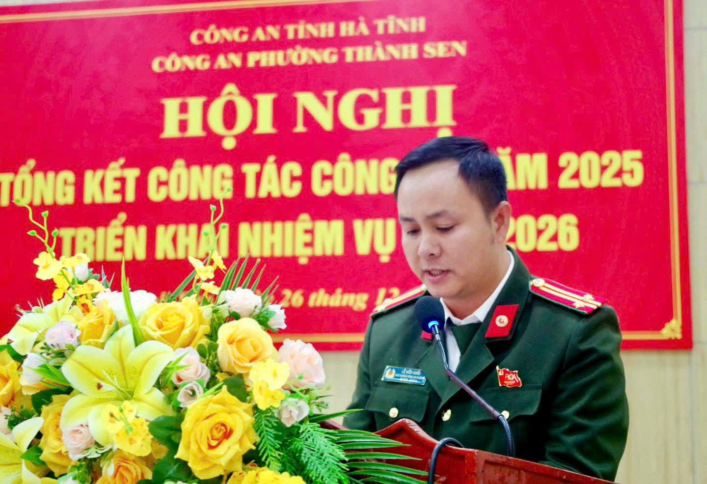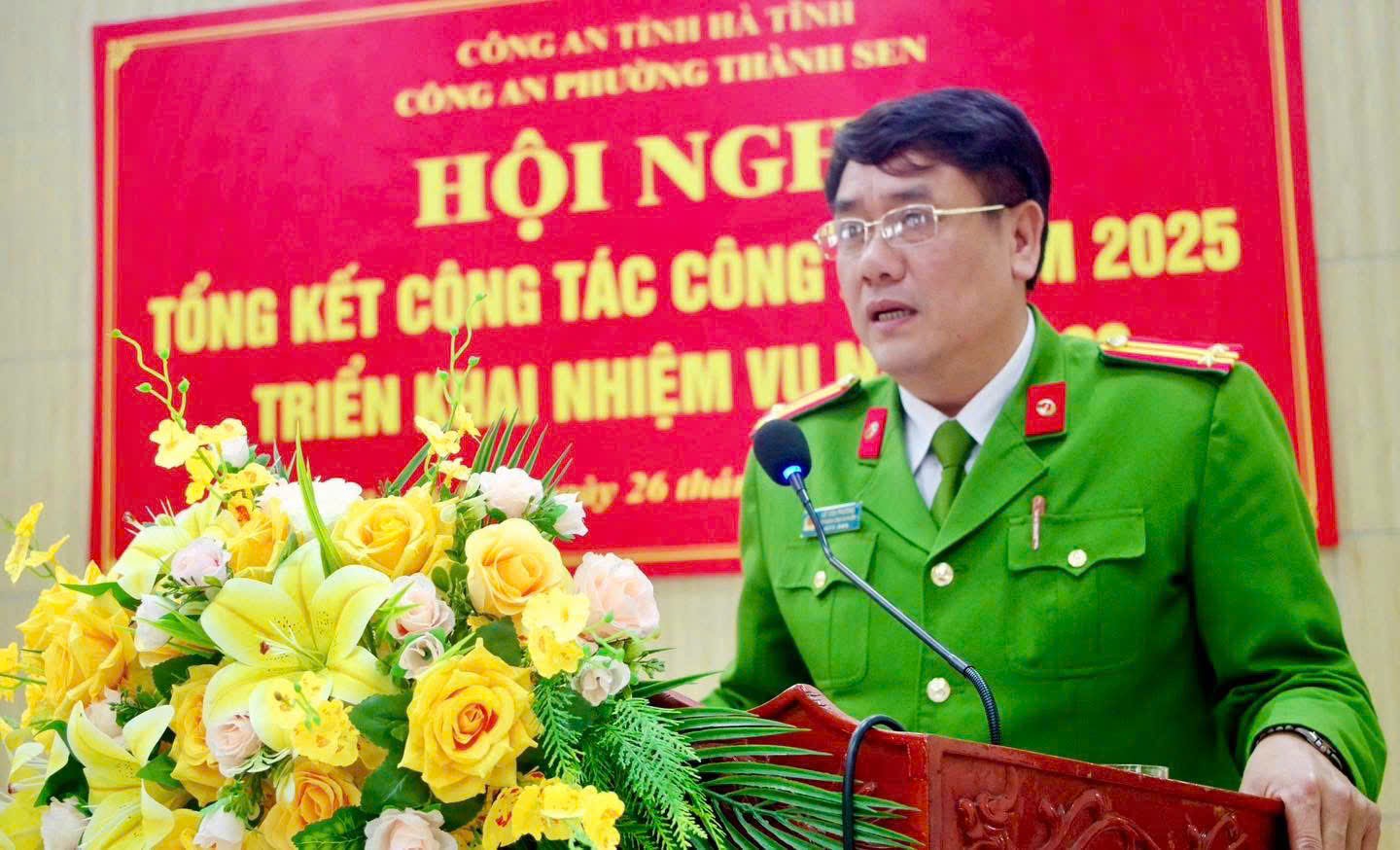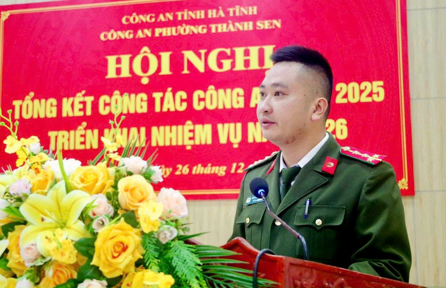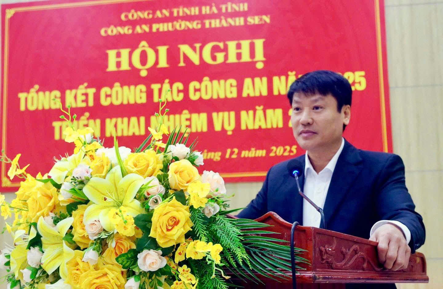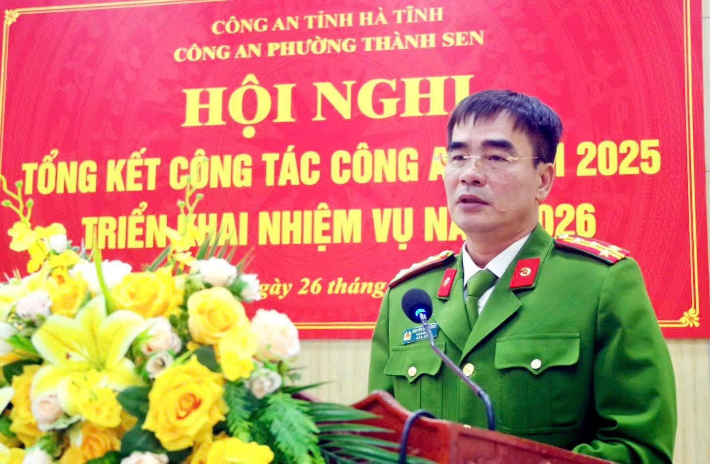 Phát biểu tại Hội nghị, đồng chí Đại tá Nguyễn Duy Đông đánh giá cao tinh thần trách nhiệm, sự chủ động của Công an phường Thành Sen; yêu cầu đơn vị tiếp tục nâng cao chất lượng công tác tham mưu, triển khai đồng bộ các biện pháp bảo đảm an ninh, trật tự ngay từ cơ sở; tập trung bảo vệ tuyệt đối an ninh, an toàn Tết Nguyên đán Bính Ngọ 2026, Đại hội đại biểu toàn quốc lần thứ XIV của Đảng và cuộc bầu cử đại biểu Quốc hội khóa XVI, HĐND các cấp nhiệm kỳ 2026–2031.