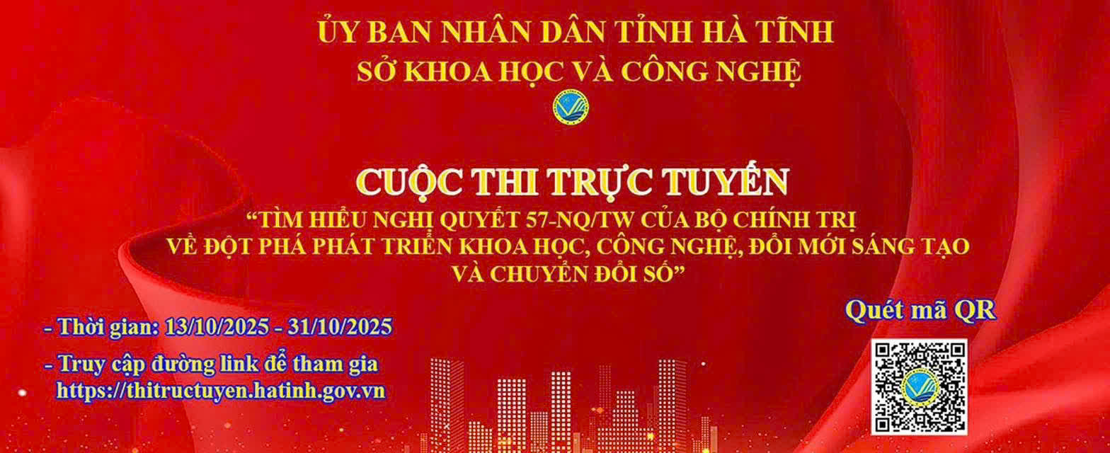 Thực hiện Kế hoạch của Ủy ban nhân dân tỉnh Hà Tĩnh, Sở Khoa học và Công nghệ tổ chức Cuộc thi trực tuyến “Tìm hiểu Nghị quyết số 57-NQ/TW của Bộ Chính trị về đột phá phát triển khoa học, công nghệ, đổi mới sáng tạo và chuyển đổi số”.