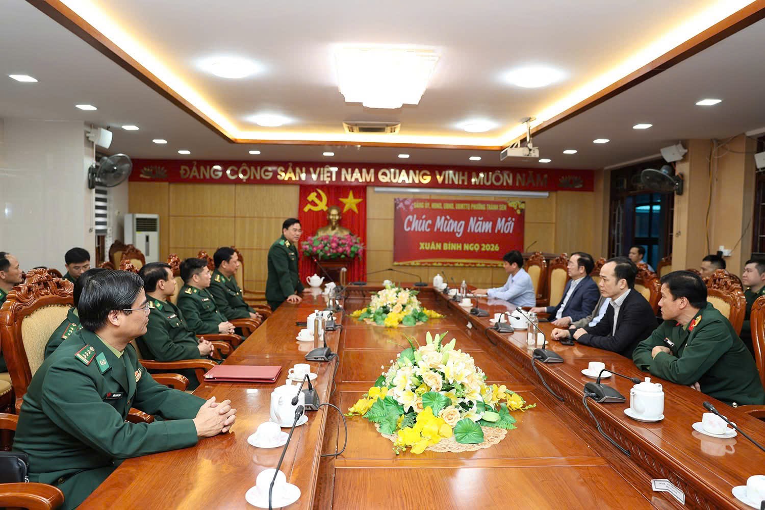Tại buổi gặp mặt, Thiếu tướng Võ Tiến Nghị đã ân cần thăm hỏi đời sống, tình hình an ninh trật tự tại địa phương. Đồng chí ghi nhận, biểu dương những nỗ lực của phường Thành Sen trong việc phát triển kinh tế - xã hội, xây dựng đô thị văn minh và đặc biệt là công tác phối hợp giữa cấp ủy chính quyền địa phương và bộ đội biên phòng trong việc vững an ninh biên giới. Trước thềm năm mới, Phó Tư lệnh BĐBP gửi lời chúc tốt đẹp nhất, chúc cán bộ và nhân dân toàn phường Thành Sen đón Tết Bính Ngọ đầm ấm, an toàn, tiết kiệm, vui vẻ và tiếp tục đạt được những thành tựu mới.