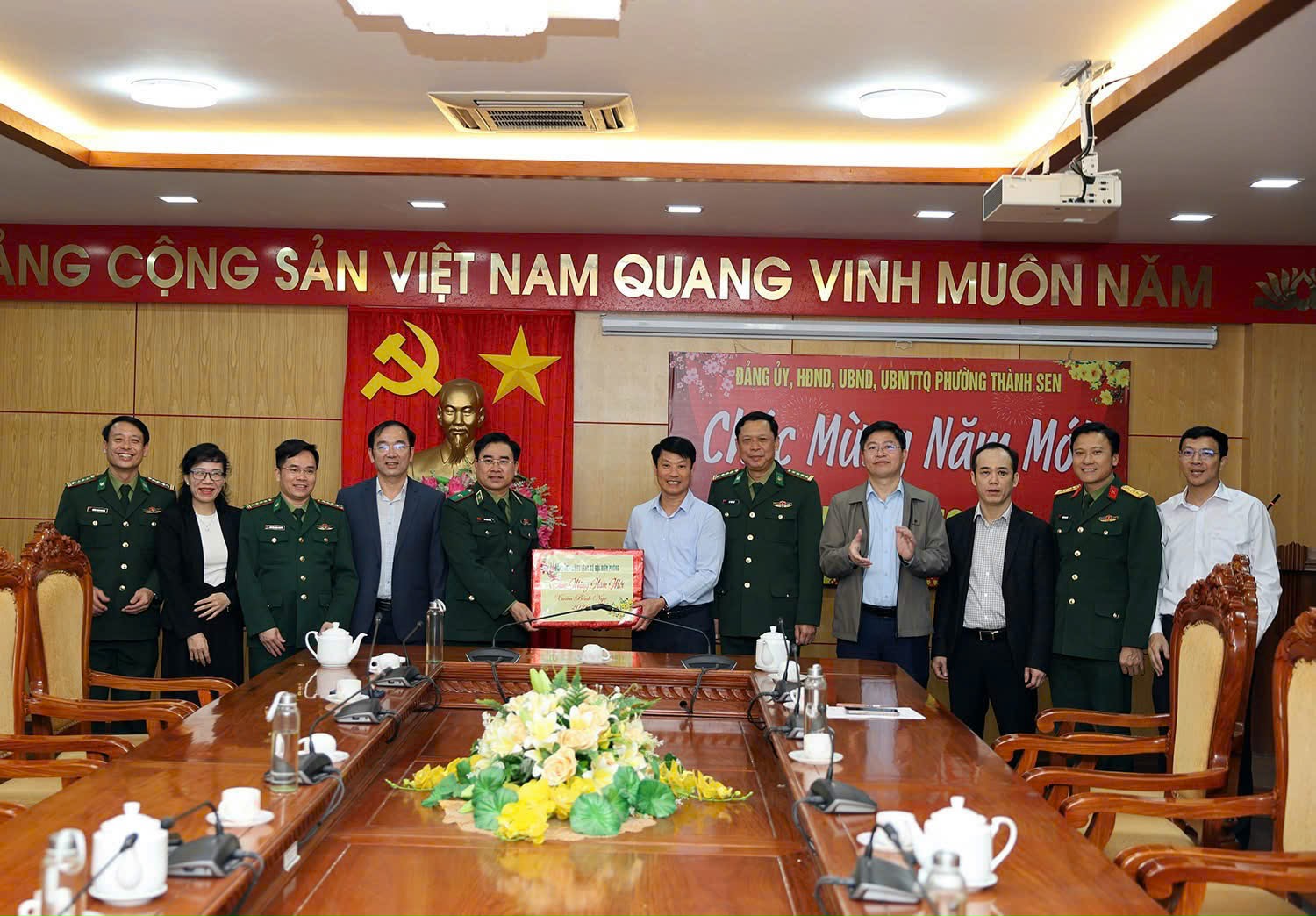 Tham dự buổi gặp mặt có đồng chí Trần Quang Tuấn – UVBTV Tỉnh ủy, Bí thư Đảng ủy, Chủ tịch HĐND phường Thành Sen và các đồng chí trong Thường trực Đảng ủy, HĐND, UBND, UBMTTQ phường Thành Sen