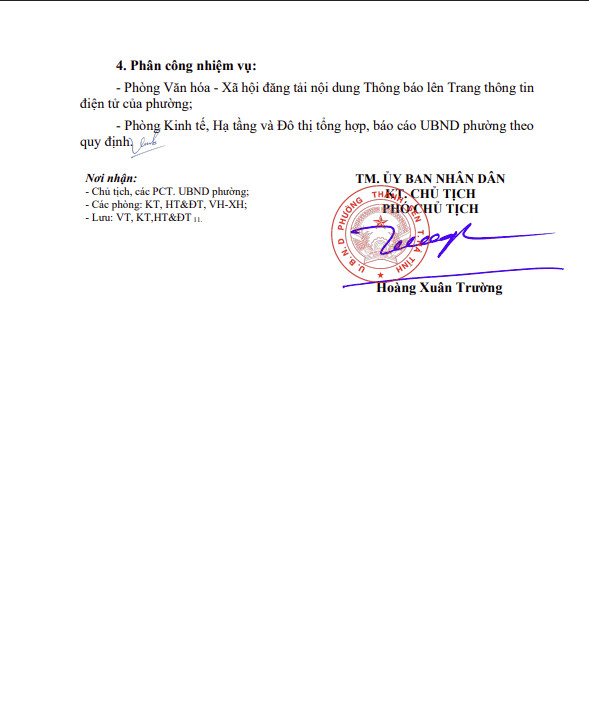 - Thời gian niêm yết 05 ngày kể từ ngày ban hành Thông báo. Các ý kiến phản hồi bằng văn bản gửi về UBND phường để giải quyết theo quy định.
