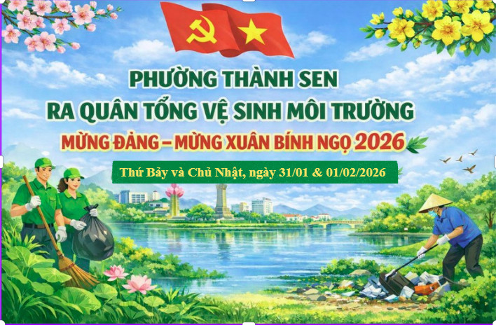 UBND phường Thành Sen đề nghị các cơ quan, đơn vị, các tổ dân phố và toàn thể Nhân dân trên địa bàn tích cực hưởng ứng, tham gia đầy đủ, chung tay giữ gìn vệ sinh môi trường, góp phần xây dựng phường Thành Sen sáng – xanh – sạch – đẹp, đón Tết Nguyên đán Bính Ngọ năm 2026 an toàn, văn minh, lành mạnh.