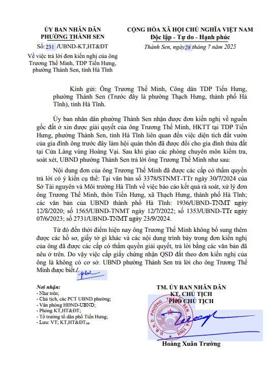 Trả lời đơn kiến nghị của ông Trương Thế Minh ở TDP Tiến HưngẨn danh28/07/2025A -A+Ẩn danh28/07/2025A -A+File đính kèmVB-TRA-LOI-DON-THU-ONG-TRUONG-THE-MINH_khanhnqthanhsen-28-07-2025_14h40p12(28.07.2025_17h58p05)_signed.pdf