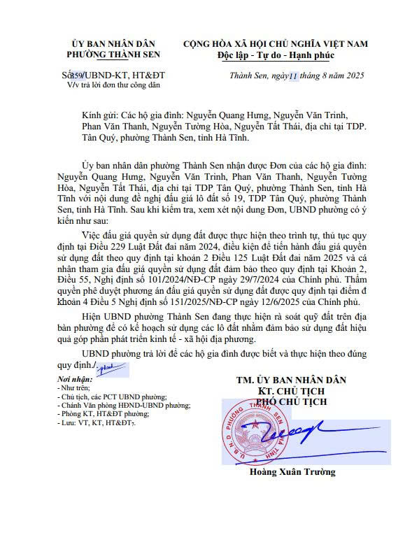 Trả lời đơn thư của các hộ gia đình tại TDP Tân QuýẨn danh11/08/2025A -A+Ẩn danh11/08/2025A -A+File đính kèmVB-tra-loi-ong-Nguyen-Quang-Hung-phuong-Thach-Quy.pdf