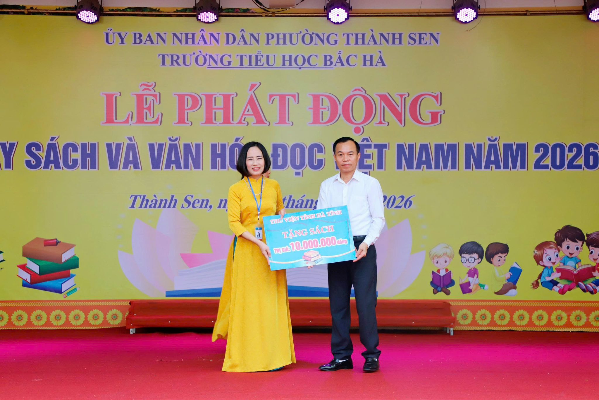 Nhân dịp này, Thư viện tỉnh Hà Tĩnh trao tặng trường TH Bắc Hà các đầu sách trị giá 10 triệu đồng.