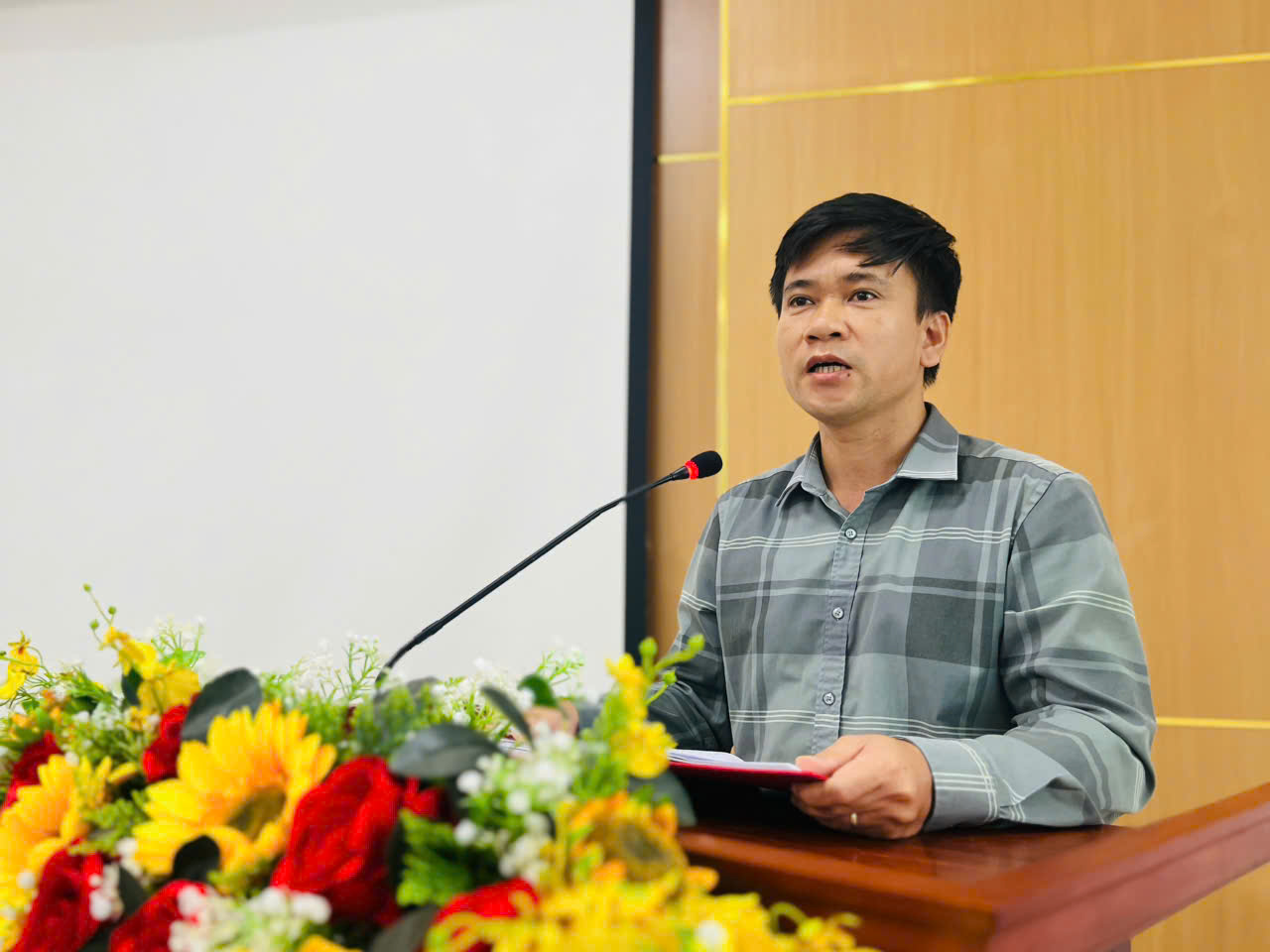 Đồng chí Nguyễn Văn Minh, Phó phòng Kinh tế, Hạ tầng và Đô thị phường báo cáo tình hình dịch hại trên cây trồng và vật nuôi